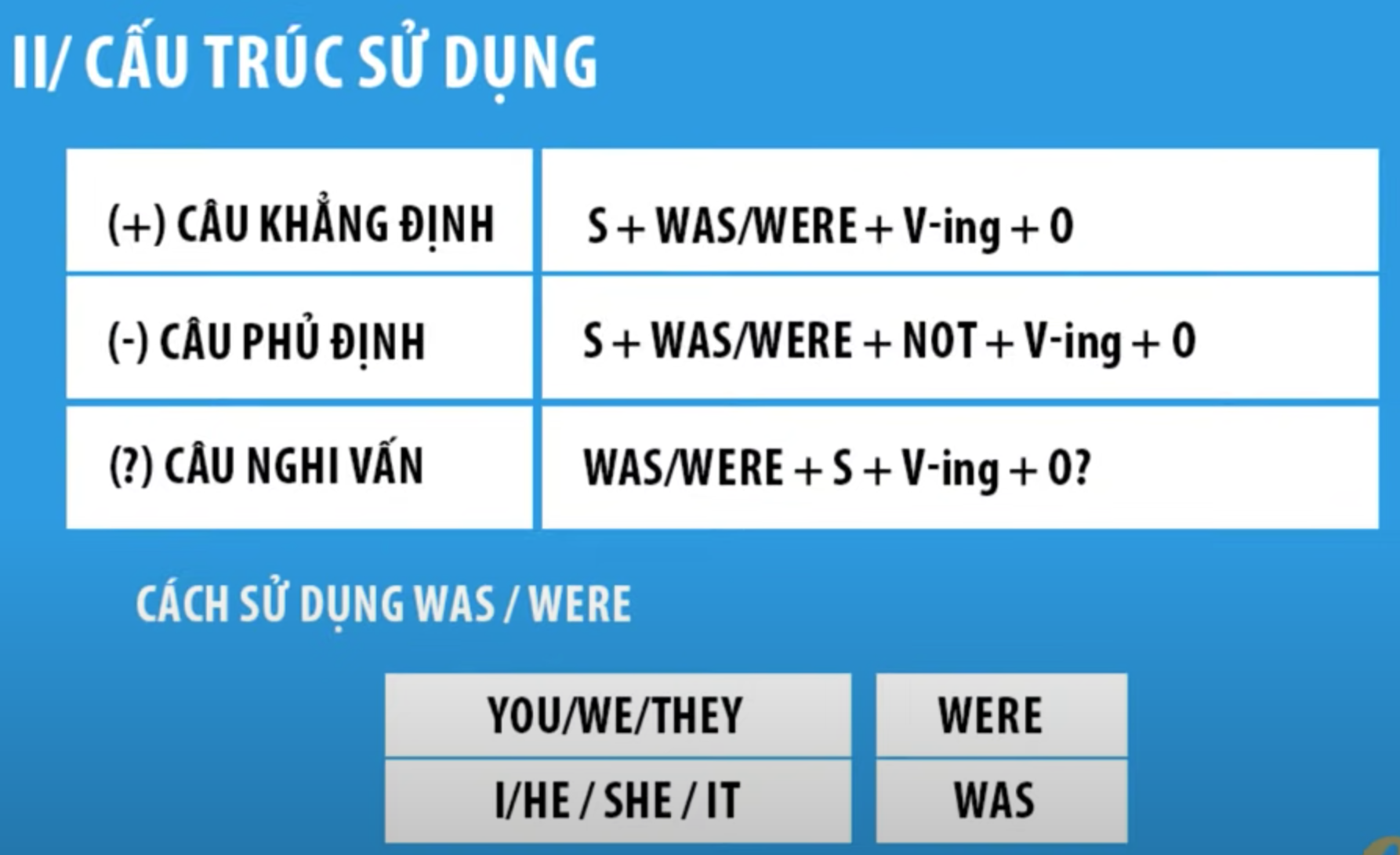 Thì quá khứ tiếp diễn trong tiếng Anh - The past continuous tense: Diễn tả hành động đã đang xảy ra tại một thời điểm xác định trong quá khứ.